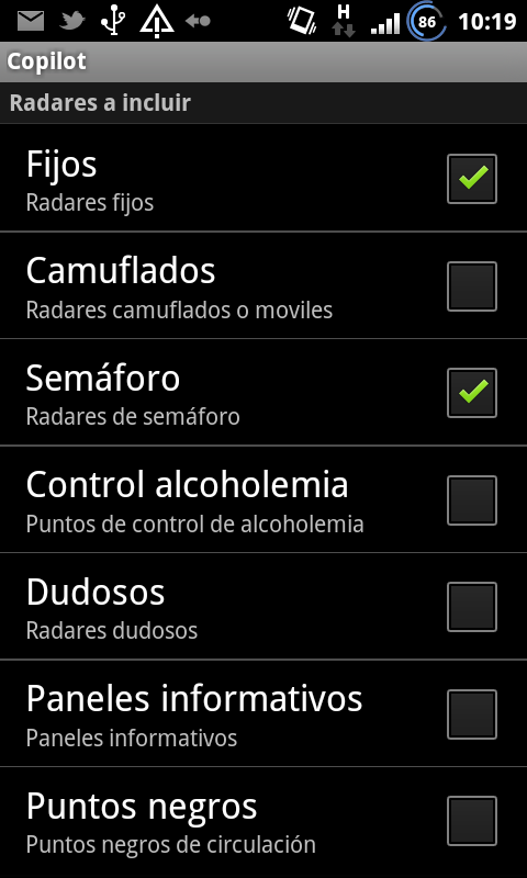 Una de las aplicaciones que es realmente útil y gratuita es andRadares, una aplicación que te permitirá tener la lista de radares (fijos, y de otros tipos según tu selección) automáticamente con tan solo pulsar un botón.