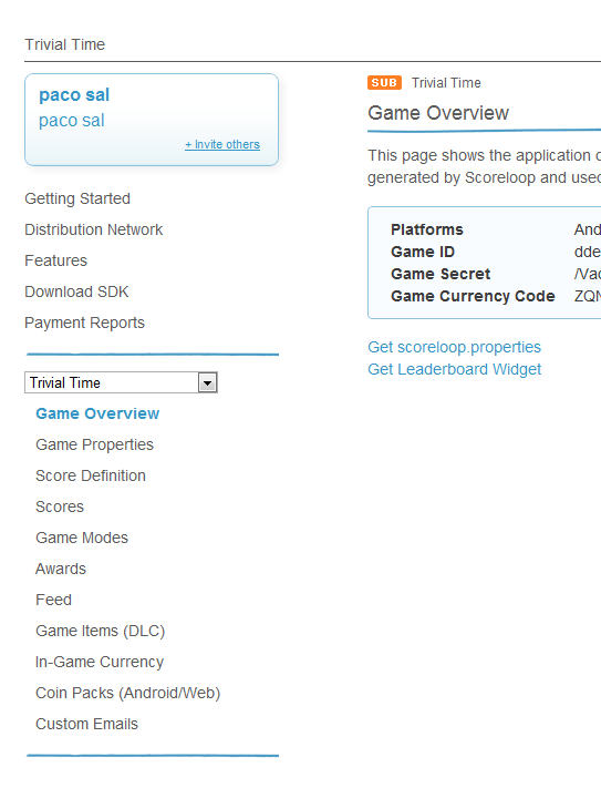 Esto nos permitirá acceder a los códigos “Game Secret” y “Game ID” que tendremos que incluir en un fichero llamado scoreloop.properties. A este fichero también se le añade el nombre y la versión del juego de la siguiente forma: