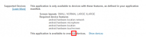 Adicionalmente para desarrolladores se ha incluido una opción para que veamos cada aplicación para que móviles es compatible dependiendo del hardware utilizado, lo que es muy interesante y donde podemos incluso excluir dispositivos a nuestro gusto.